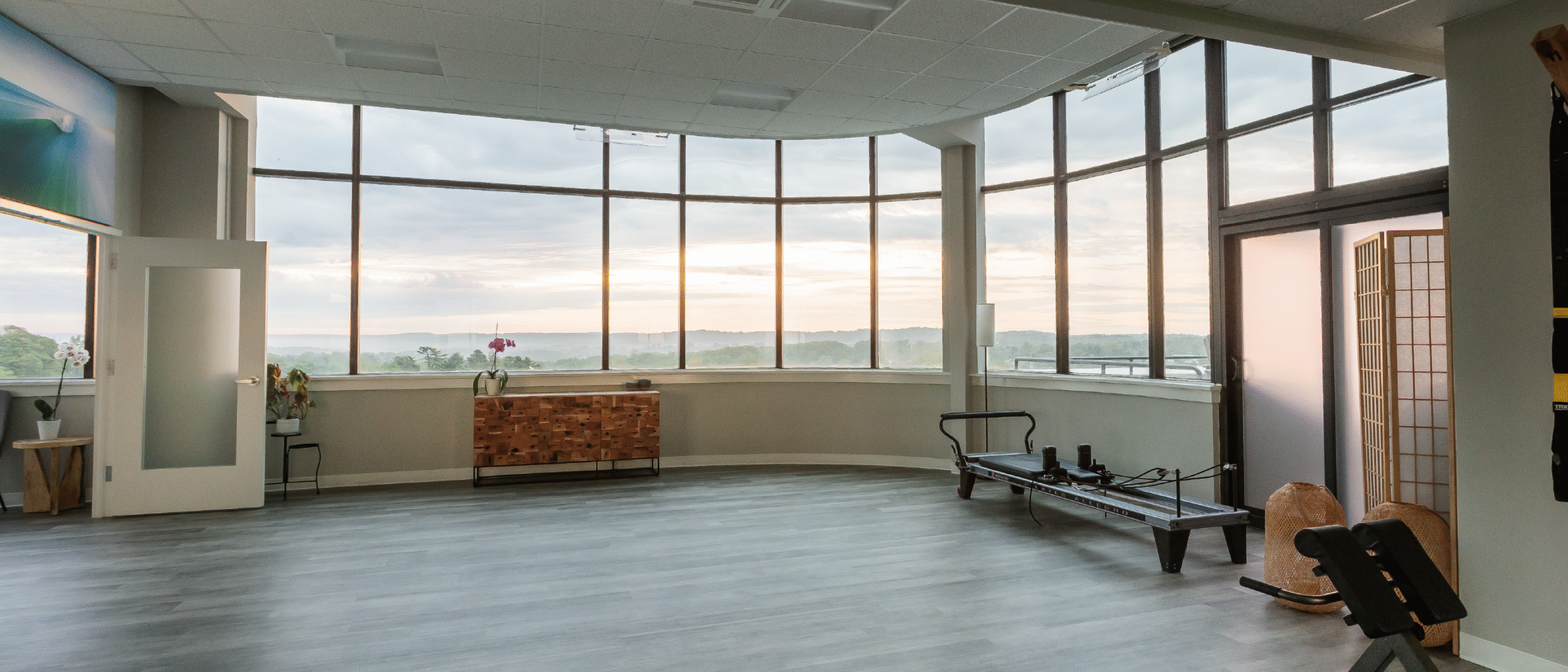 Located on the eighth floor, the space is filled with natural light and overlooks wooded hills and a nearby reservoir. Large windows, open sightlines, and access to the outdoors create a sense of calm and separation from the noise and pace of typical medical settings.